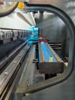 The slider movement axes control the bending depth and bending angle. The system consists of the control unit, two glass scales (Y1, Y2) installed on the work table, electro-hydraulic proportional valves and an amplifier. A closed control loop detects and controls the relative position of the slide and table as well as the speed and position of the slide. This ensures the synchronisation of the slide and maintains the bending depth and angle with high precision.